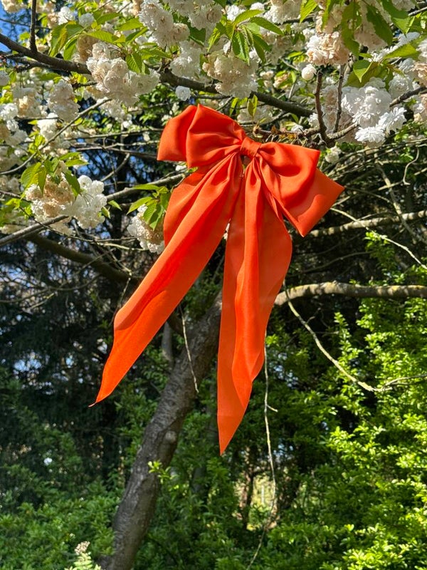 Grote haar strik voor in het haar in de kleur oranje.